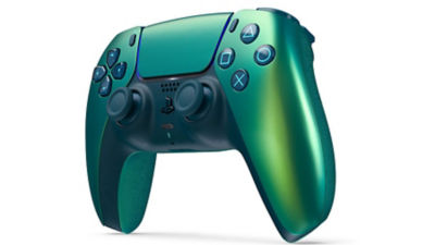 El mando inalámbrico DualSense® Chroma Teal, que cambia de color según el ángulo con una gama iridiscente de tonos verdes, aporta un toque refrescante a la gama de accesorios de PlayStation®5.